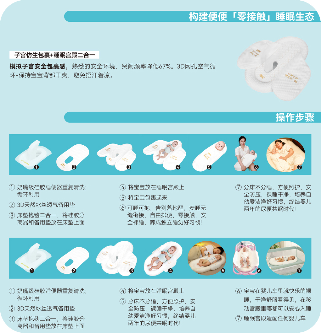 貝嬰爽嬰兒床墊獲得國家多項專利,徹底解決了嬰兒大小便的煩腦, 告別了捂住屁股時大小便對皮膚和生殖器官的腐蝕。真正做到大小便與皮 膚分離讓寶寶屁股干凈干爽,有效的保護了嬰兒的生殖器管和皮膚,也提 高了嬰兒的睡眠,讓寶寶舒心,媽媽放心!為每個家庭每年還可以節約 3000元尿不濕的費用,每個家庭一天減少2公斤的生活垃圾,一年減少 700公斤生活垃圾。中國一年有千萬嬰兒可減少城鄉垃圾700萬噸左右, 減少森林砍伐1000萬噸左右。